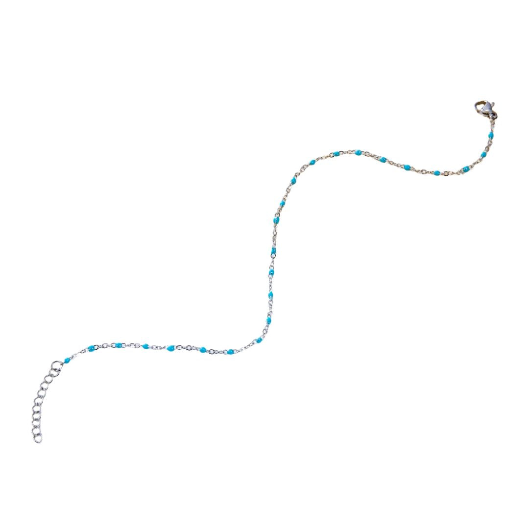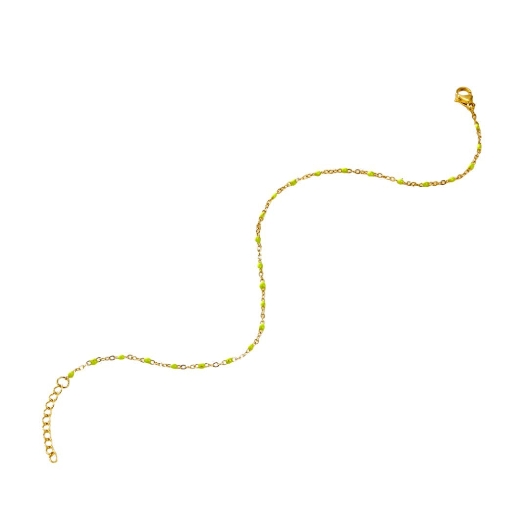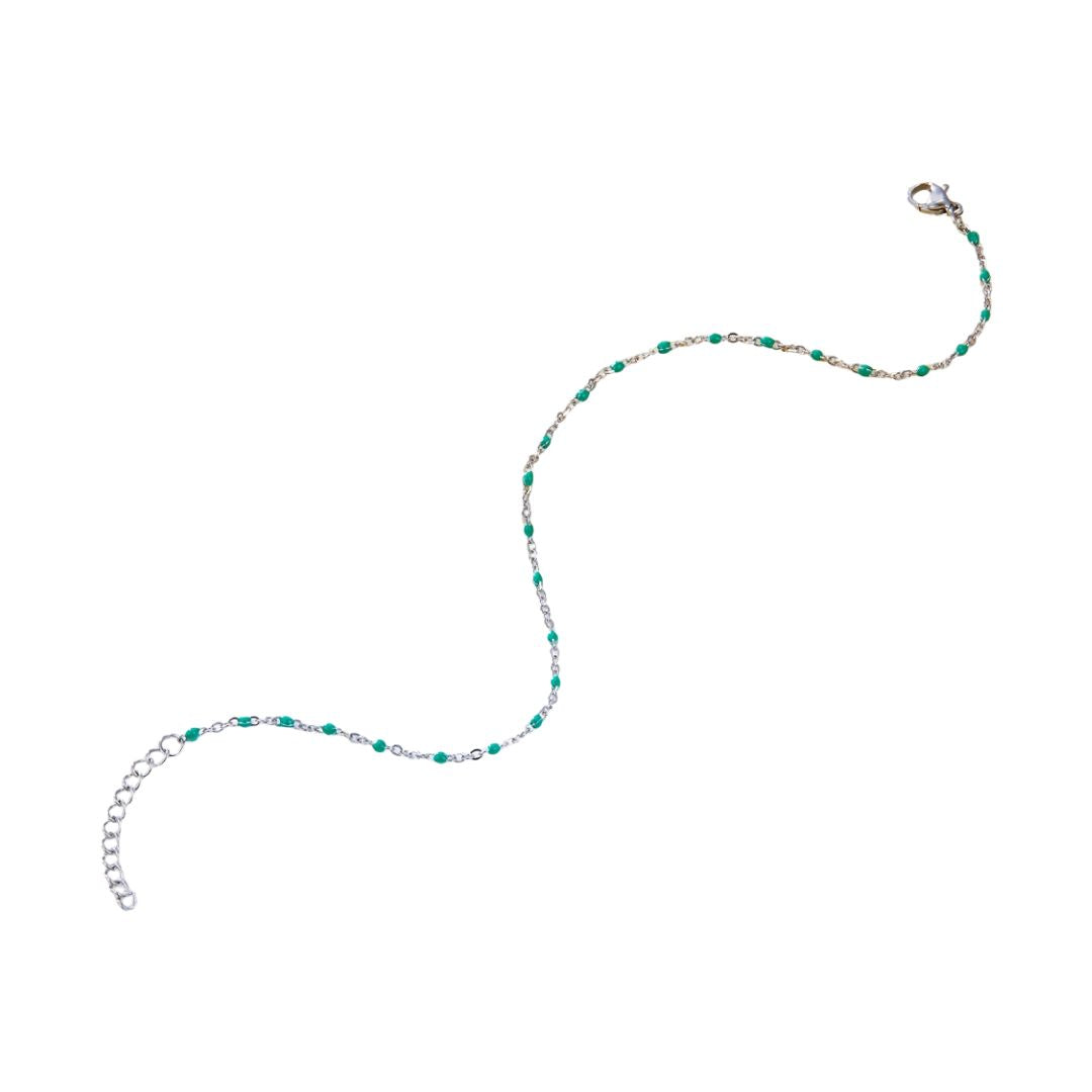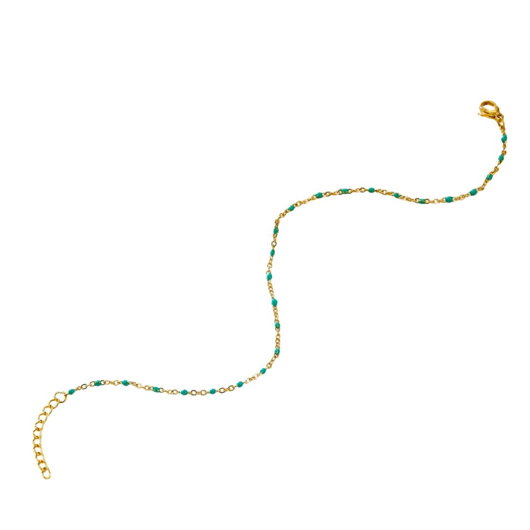 Goud of zilverkleurig fijn enkelbandje van rvs met gekleurde accenten. Krachtig door zijn eenvoud met speelse kleuraccenten. Dankzij het verlengkettinkje kan het makkelijk in lengte worden aangepast. Mix en match deze leuke enkelbanden met kralenvarianten.